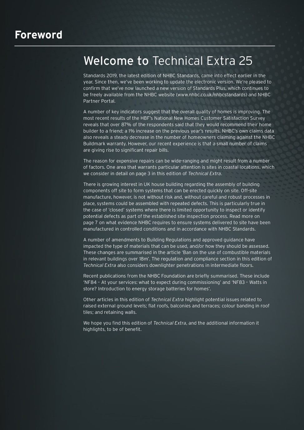 Updated chapter 6 6 staircases this chapter has been fully updated to make it clearer and align with industry guidance revised chapter 9 1 a consistent approach to finishes includes new guidance as well as a review of the existing tolerances to ensure they are appropriate and meet the reasonable expectations of homeowners.